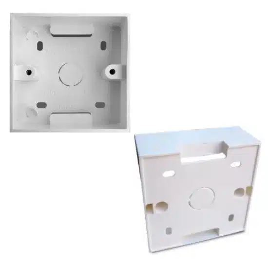 Πλαστικό κυτίο διαστάσεων 86Χ86Χ33 mm, κατάλληλο για τοποθέτηση θερμοστατών και άλλων συσκευών, επιτοίχεια ή χωνευτά σε τοίχο,