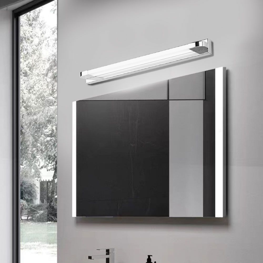 Με Chrome μεταλλικό σώμα και ματ διάχυτη επιφάνεια φωτισμού, ταιριάζει άψογα σε μπάνια με minimal ή industrial χαρακτήρα. Η ουδέτερη θερμοκρασία φωτός 4000K προσφέρει καθαρό, φωτεινό αποτέλεσμα, ιδανικό για μακιγιάζ, ξύρισμα ή καθημερινή χρήση.