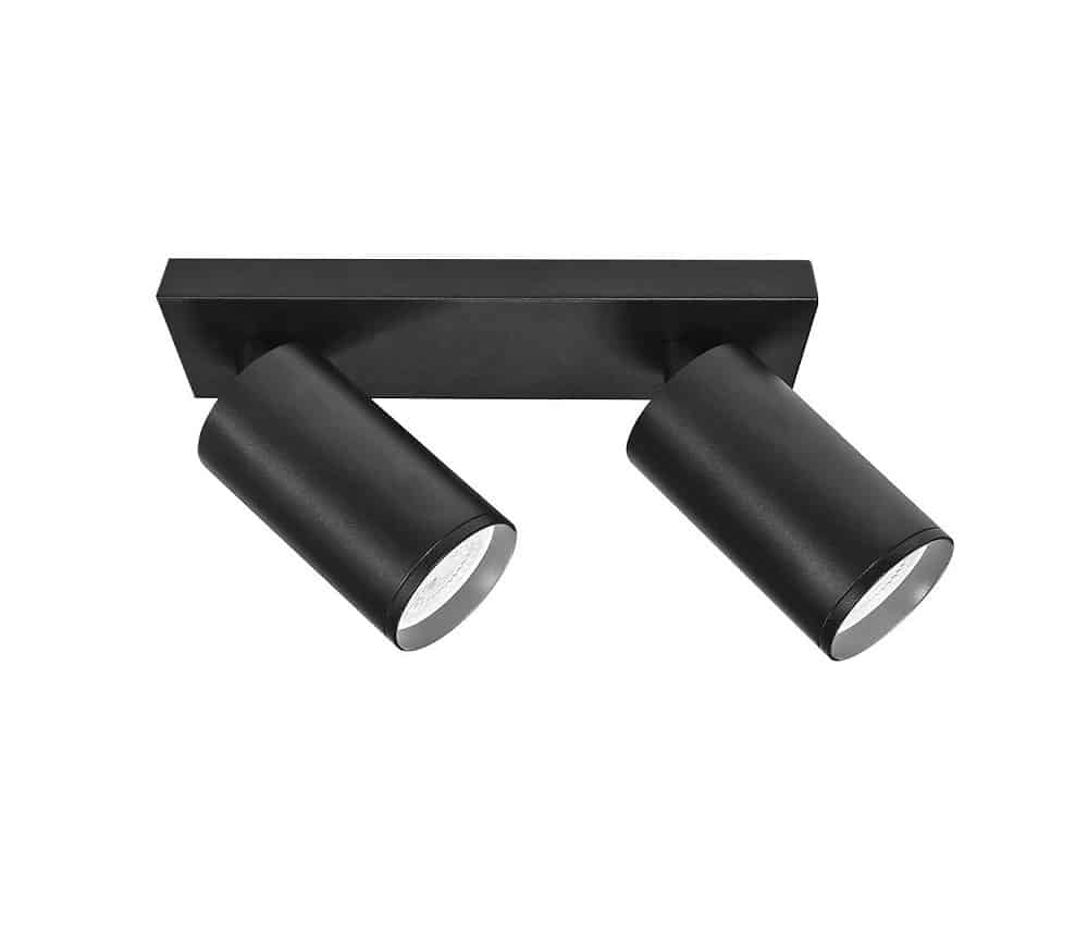 Το φωτιστικό διαθέτει δύο υποδοχές τύπου GU10, επιτρέποντάς σου να επιλέξεις λαμπτήρες LED της προτίμησής σου — ανάλογα με την ισχύ, τη θερμοκρασία χρώματος και τη γωνία δέσμης. Οι κεφαλές των σποτ είναι πλήρως ρυθμιζόμενες, με δυνατότητα οριζόντιας και κάθετης περιστροφής, ώστε να κατευθύνεις το φως ακριβώς εκεί που χρειάζεσαι.