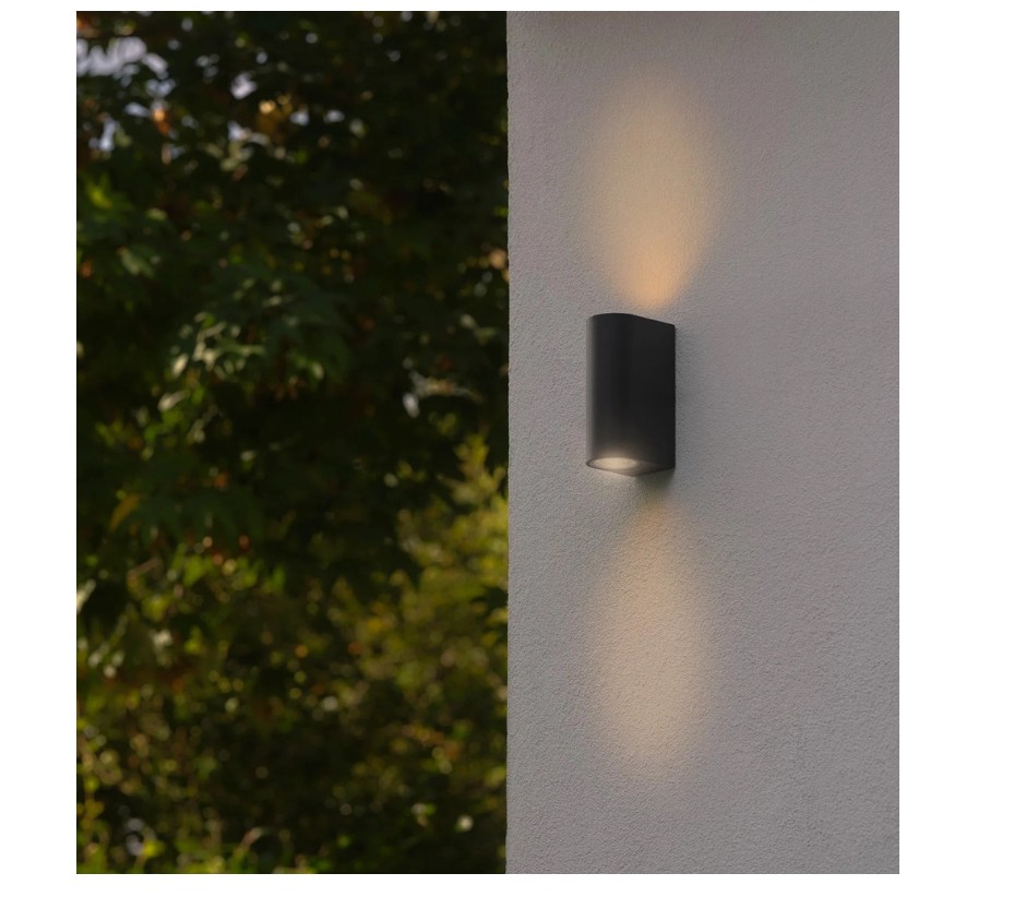 Κομψό και ανθεκτικό φωτιστικό τοίχου εξωτερικού ή εσωτερικού χώρου, σχεδιασμένο για χρήση με λάμπες τύπου GU10.