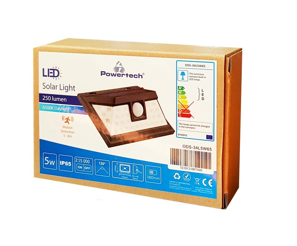 Ηλιακό φωτιστικό Led ODS-34L5W65, αισθητήρας φωτός & κίνησης, 5W 1800mAh