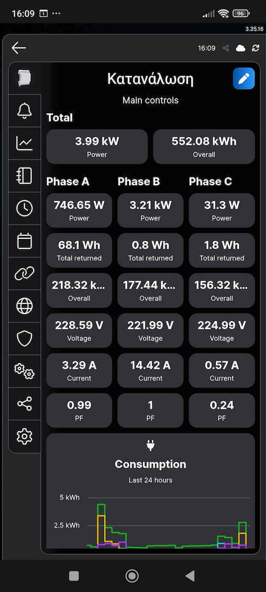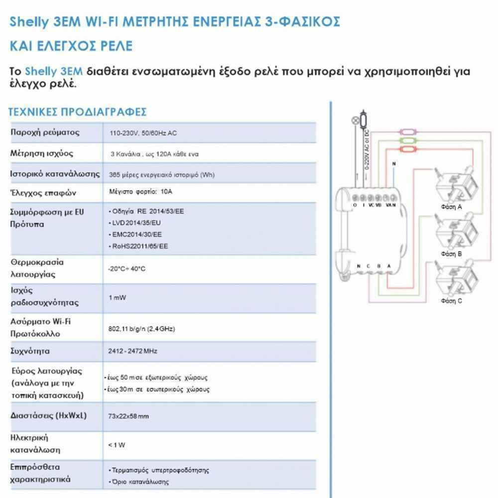 - Μετρηση κατανάλωσης ενέργειας σε 3 φάσεις έως 120 A ανά φάση, έτσι γνωρίζεις πόση ενέργεια καταναλώνει κάθε κύκλωμα ή συσκευή.