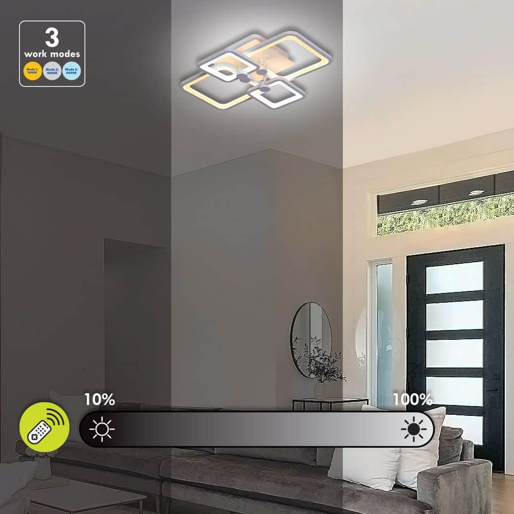 Με απόδοση 5906 lumen, προσφέρει δυνατό και καθαρό φως 4000K, ενώ οι μεγάλες διαστάσεις του καλύπτουν άνετα ακόμη και απαιτητικούς χώρους. Η δυνατότητα ρύθμισης έντασης μέσω τηλεχειριστηρίου (περιλαμβάνεται) επιτρέπει την εύκολη προσαρμογή της ατμόσφαιρας — από έντονο φωτισμό για δουλειά μέχρι χαμηλό, ζεστό περιβάλλον για χαλάρωση. Το flicker-free σύστημα εξασφαλίζει άνεση στα μάτια, ιδανικό για καθημερινή χρήση, διάβασμα ή εργασία.